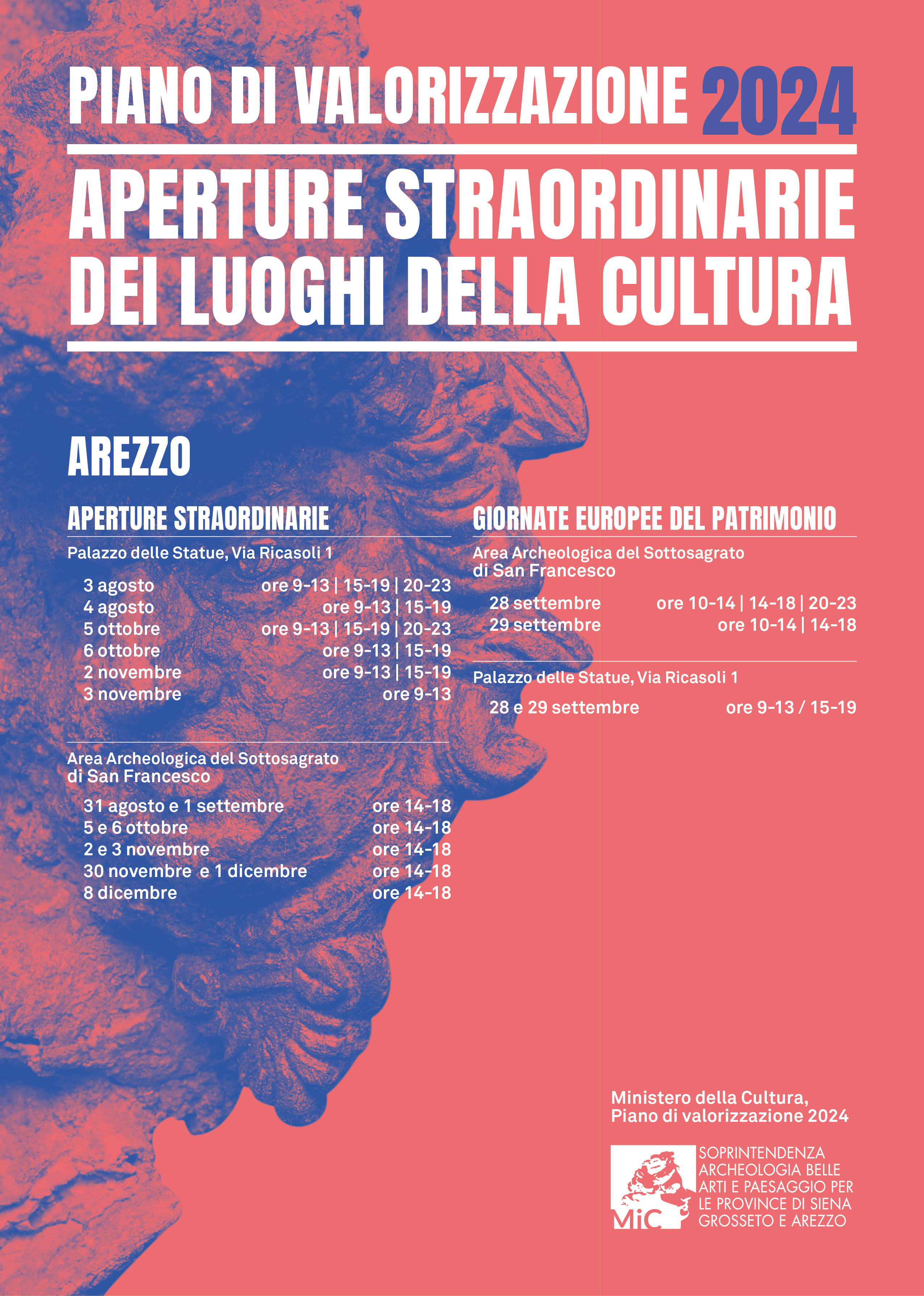 Anche per il 2025 la Soprintendenza Archeologia, Belle Arti e Paesaggio per le province di Siena, Grosseto e Arezzo rinnova la partecipazione al “Piano di valorizzazione” promosso dal Ministero della Cultura, offrendo un ricco calendario di aperture straordinarie e gratuite che coinvolgeranno alcuni dei luoghi più suggestivi e meno conosciuti del patrimonio culturale toscano.