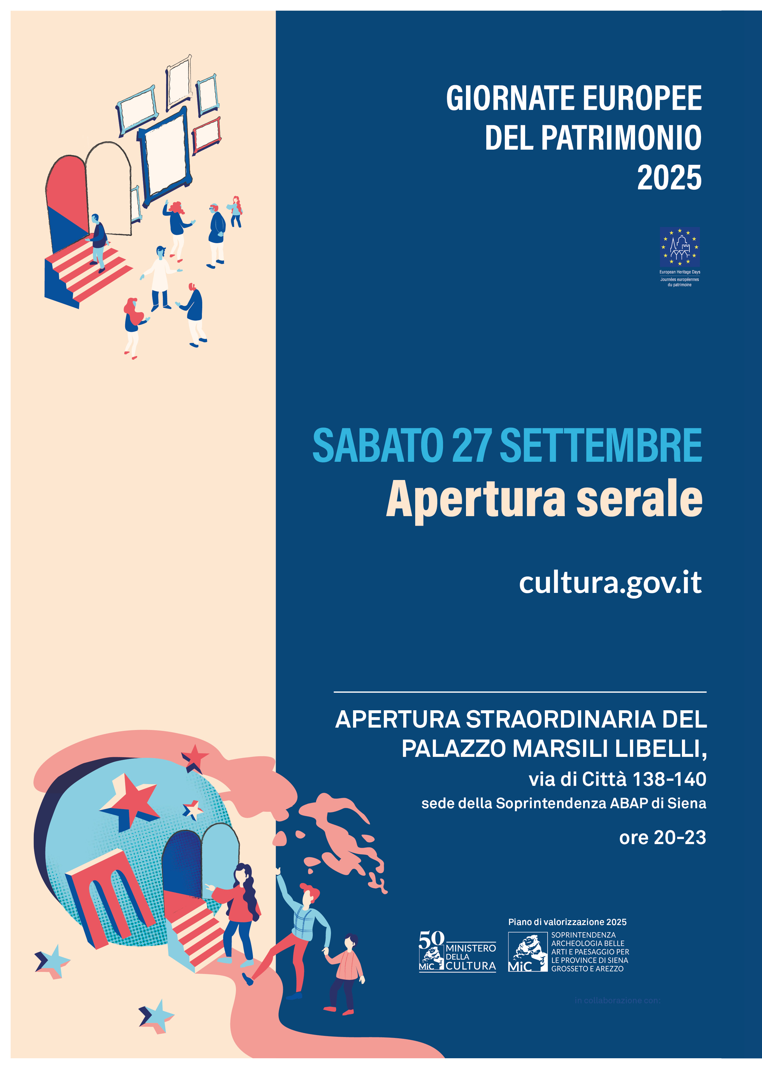 Infine, a settembre in occasione delle Giornate Europee del Patrimonio e della Notte Europea dei Musei, Palazzo Marsili Libelli, storica sede della Soprintendenza a Siena in via di Città, aprirà le proprie porte al pubblico per raccontare da vicino le attività e i progetti dell’ufficio, offrendo uno sguardo inedito su un luogo normalmente chiuso.